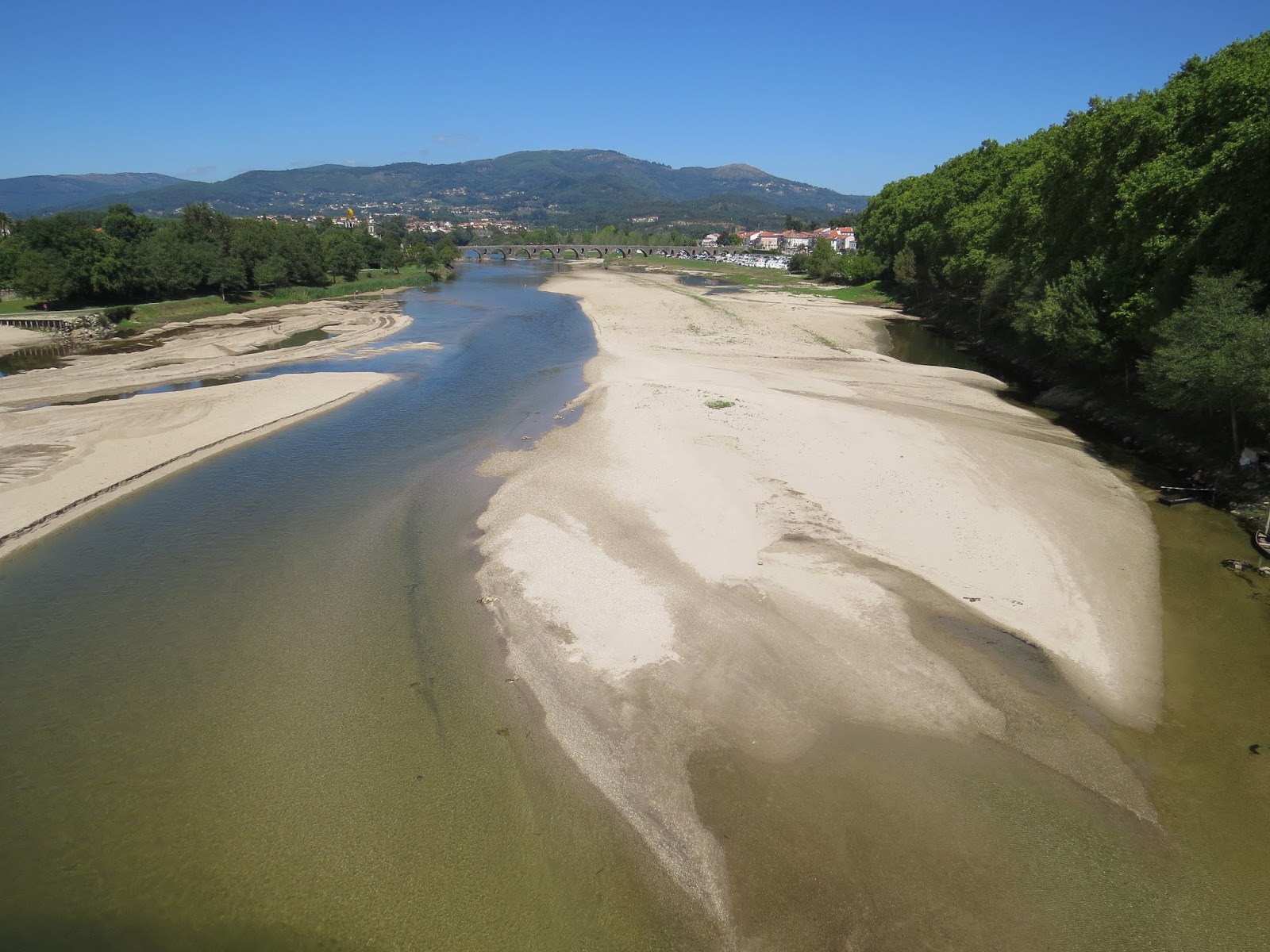 Há já algum tempo que decorrem no leito do espelho de água formado entre as pontes romana e a da Srª da Guia, em Ponte de Lima, obras de relevo a montante e a juzante desta última travessia do rio Lima com vista à melhoria do lençol aquático que se formava no "areal" e era usado como pista de treino para a atividade de canoagem. Pela observação do atual estado dos trabalhos, poder-se-à presumir que a ideia visa ampliar a área do leito do rio e a estabilização do nível e profundidade da água a montante da ponte nova, em razão dos trabalhos que estão a ser efetuados a juzante onde decorre a construção de um açude de cota mais elevada no local da anterior, bem como do que julgo ser uma eclusa na margem esquerda, quiçá para a passagem de embarcações menores e acesso das espécies que habitam no rio Lima.
