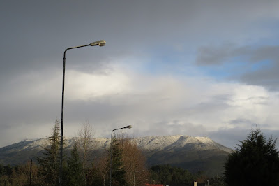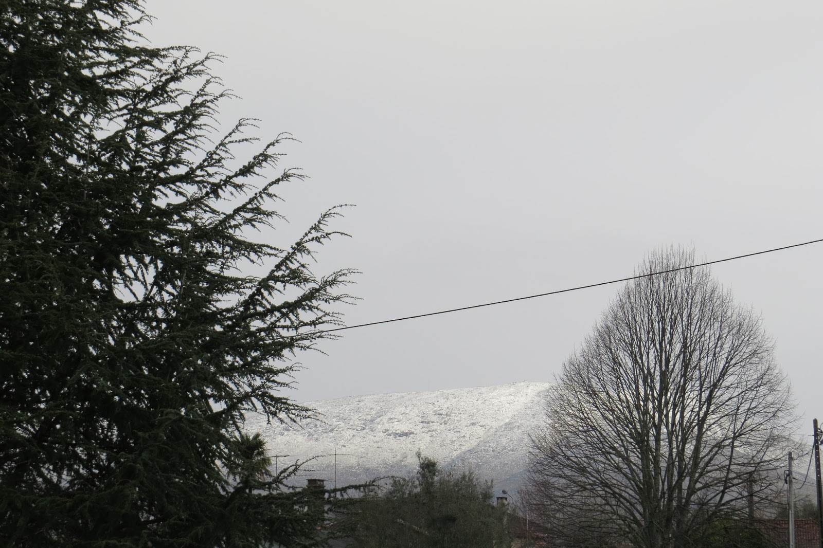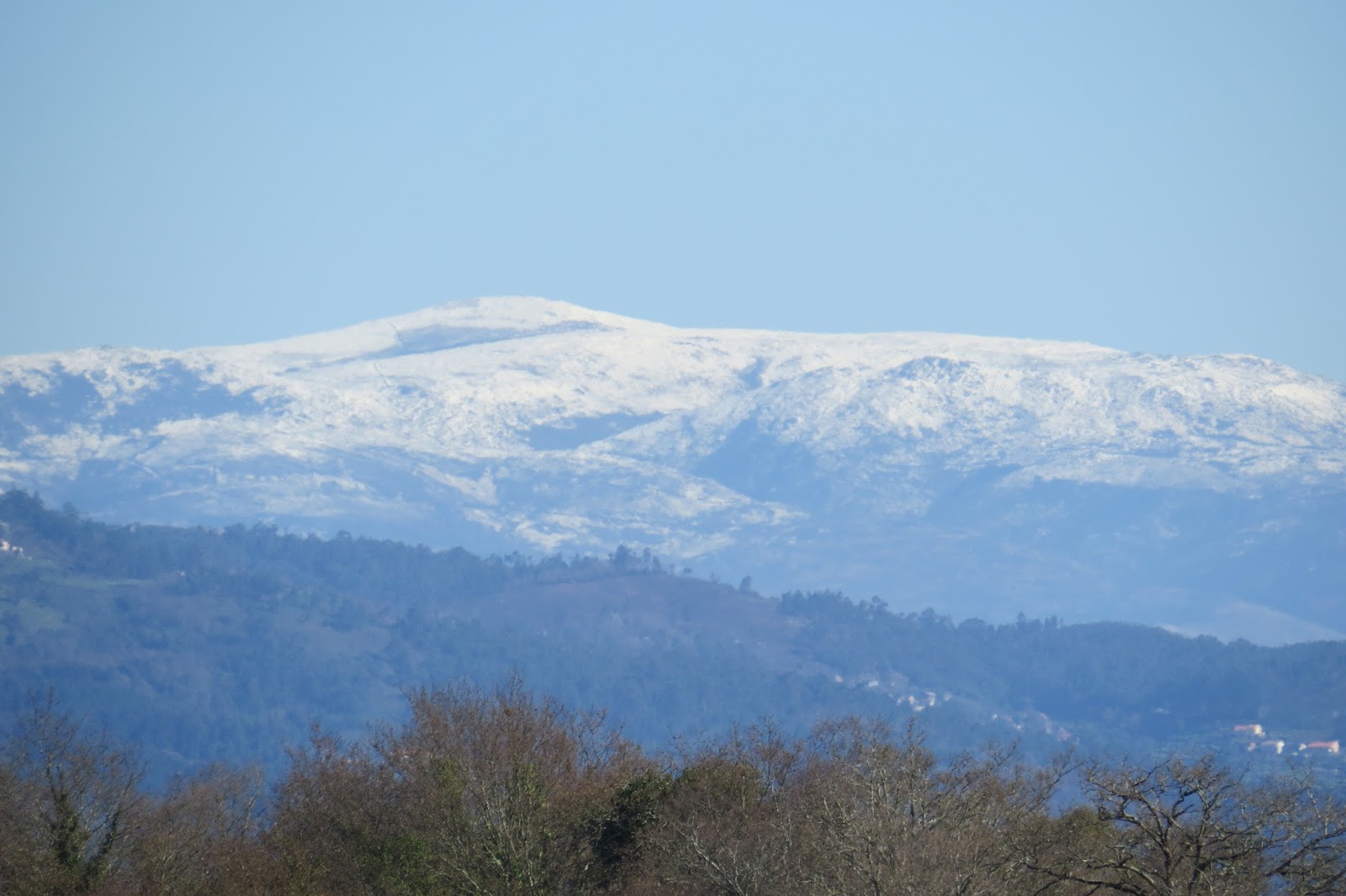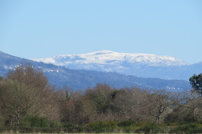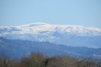 Com o céu limpo e sol brilhante a vista alcança maiores distâncias e descobre cenários não insólitos porque prováveis em função das condições atmosféricas, mas diferentes do que é mais comum e normal na região do Alto Minho. É o caso de ontem ter sido possível avistar coberto de neve o maciço montanhoso da área de Arcos de Valdevez, (que presumo tratar-se da serra Amarela) alguns quilómetros distante de Lanheses, a nordeste, com o cume gelado a brilhar pela incidência dos raios solares a contrastar com a encosta arborizada da Bualhosa em Ponte de Lima.