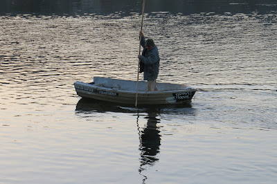 A safra de lampreias deste ano parece não estar a correr muito bem aos pescadores amadores. Pelas conversas que vou travando com alguns deles e pela observação diária que faço junto ao rio, no cais das barquinhas de fundo chato no espaço a montante da ponte Edgar Cardoso, não me recordo de ver sair na ponta do bicheiro a debater-se uma lampreia fisgada. Esta manhã, antes do sol nascer, eram quatro as embarcações a circular no rio na parcela onde cada um dos pescadores tem os seus próprios ramos e pretende manter exclusividade de pesca, o quem nem sempre é respeitada e pode dar lugar a conflitos.