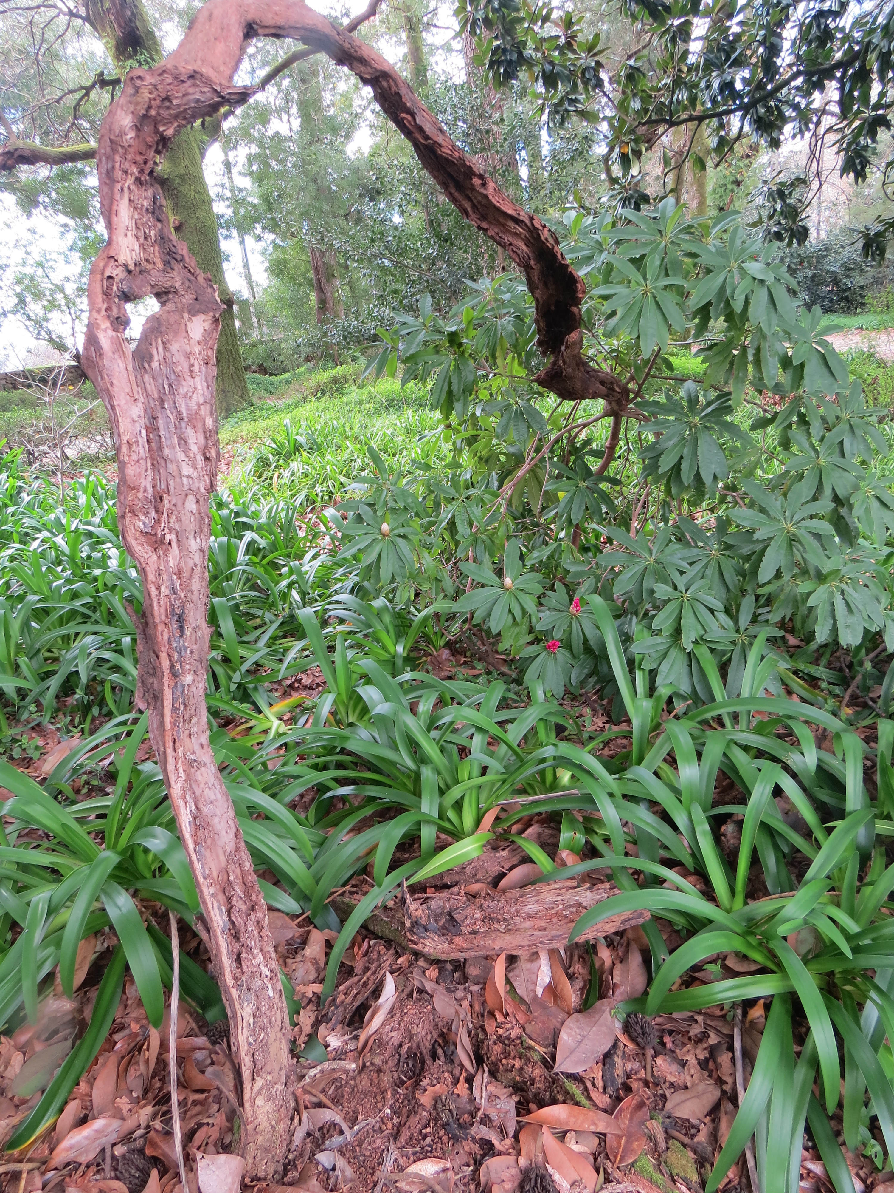 Há anos que venho a escrever sobre um rodondendro que, apresentando-se do que resta dele num estado de visível degradação em modo esquelético, ainda nesse resto de vida corre seiva para criar (lindas) flores. Conheci-o com alguns metros de altura de ramos frondosos, debaixo de uma japoneira majestosa e viçosa como se filho dela fosse. Povoava-se de flores a anunciar a primavera competindo com a mãe protetora entre o carmim das suas e o branco da companheira podendo mostrar-se a quem passasse na estrada ao lado. Contudo, com o tempo, os ramos mais altos iam secando, o tamanho da copa reduzia progressivamente até se tornar num único ramo com aparência de seco, na ponta do corpo em arco como um idoso, ao mesmo tempo braço furado, mas por onde passa ainda o sustento de um ramo com meia dúzia de flores na ponta e cujo peso não suporta e já cai no chão.